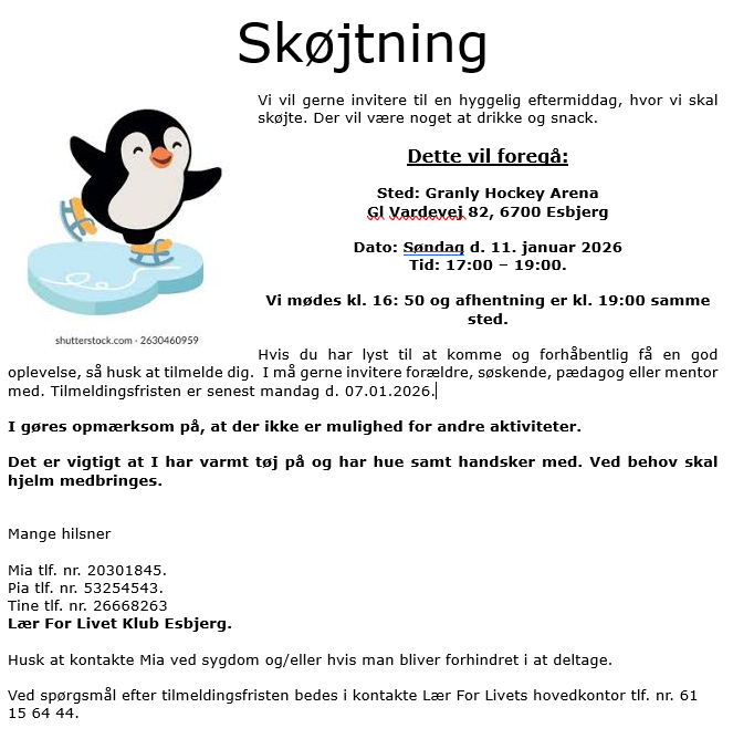 Klub Esbjerg inviterer alle til en skøjtetur.